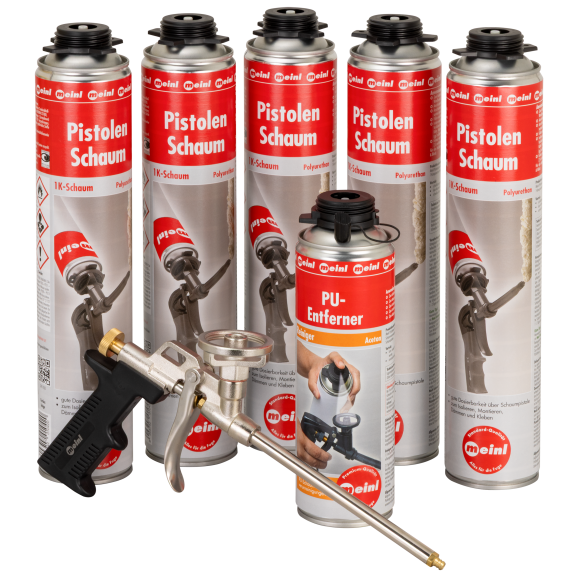Set bestehend aus 5 Dosen Pistolenschaum, 1 Dose PU-Entferner, PU-Schaumpistole Metall